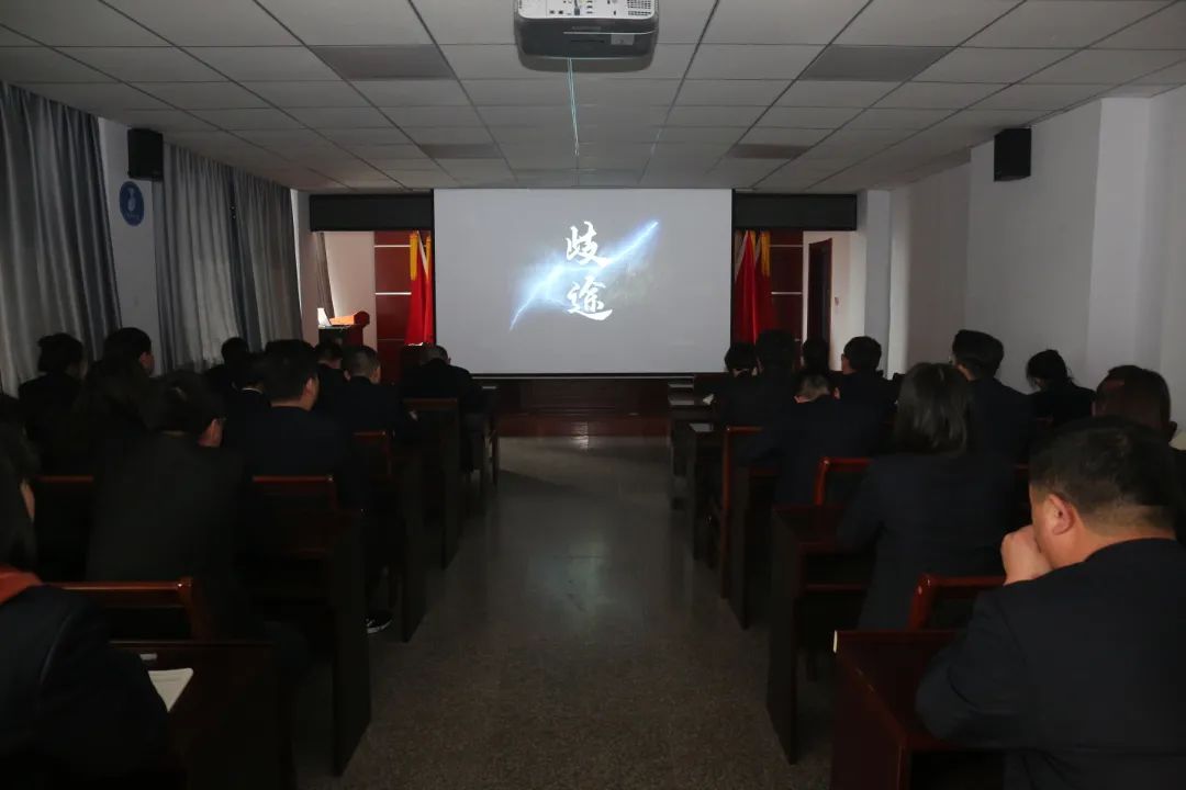 會上,全體黨員干部集中觀看了警示教育片《歧途》。