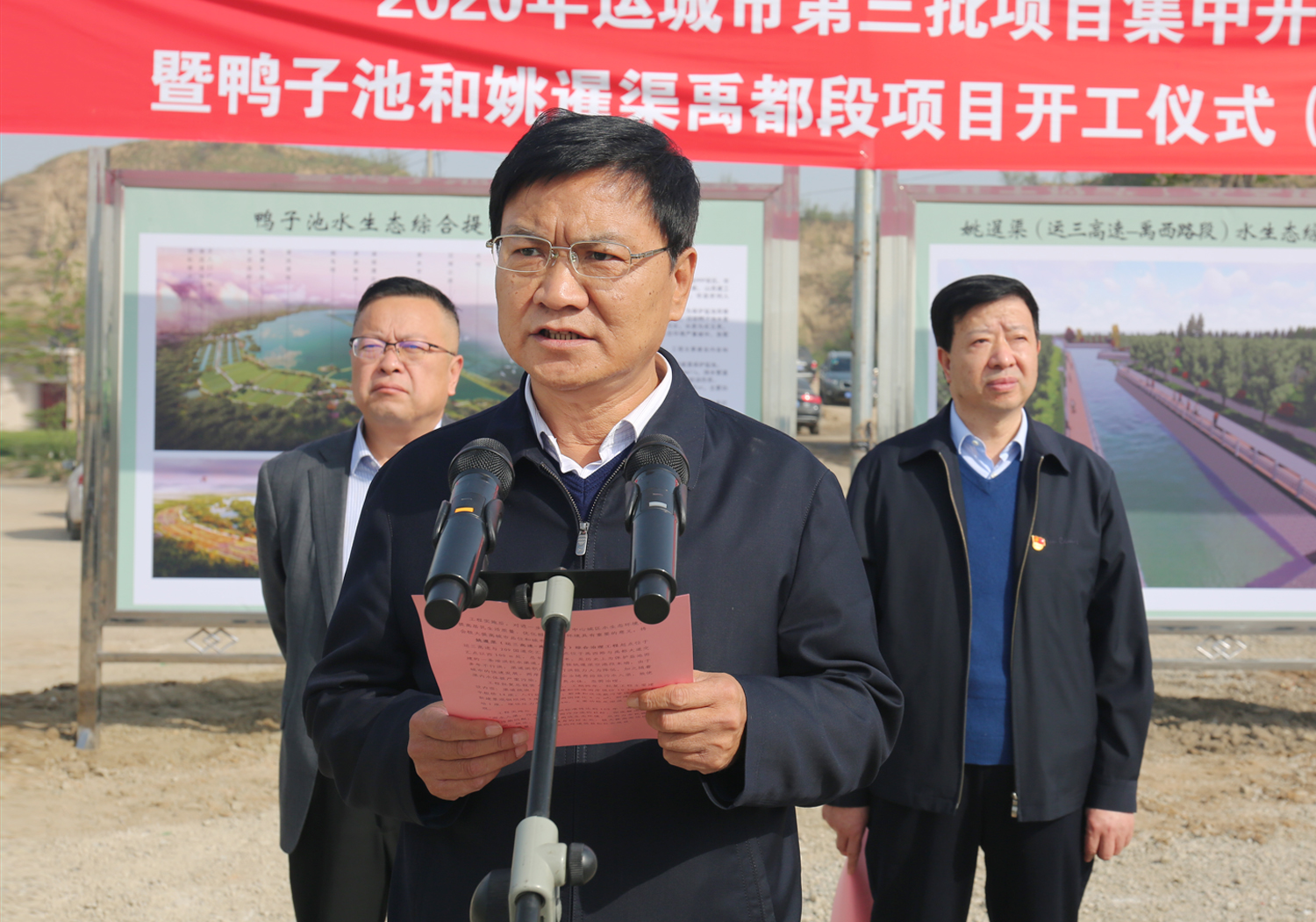 4月15日,在全市第三批重點(diǎn)項(xiàng)目集中開(kāi)工分會(huì)場(chǎng),鴨子池北口,我公司實(shí)施的“1311”重點(diǎn)工程項(xiàng)目姚暹渠(運(yùn)三高速-禹西路)水環(huán)境綜合治理PPP項(xiàng)目和鴨子池水生態(tài)綜合提升工程PPP項(xiàng)目舉行開(kāi)工儀式,市水務(wù)局局長(zhǎng)靳虎剛,市水投公司董事長(zhǎng)崔作銘、副總經(jīng)理呂希汶,運(yùn)城經(jīng)開(kāi)區(qū)管委會(huì)副主任張大虎、鹽湖區(qū)水務(wù)局局長(zhǎng)王杰妮,安邑辦事處主任孔繁榮、東郭鎮(zhèn)鎮(zhèn)長(zhǎng)薛世鵬,兩個(gè)工程的項(xiàng)目管理公司高強(qiáng)、胡峰偉董事長(zhǎng),山西建工西北分公司李興波經(jīng)理等部門(mén)領(lǐng)導(dǎo)參加了開(kāi)工儀式。開(kāi)工儀式由市水投公司副總經(jīng)理范永勝主持。