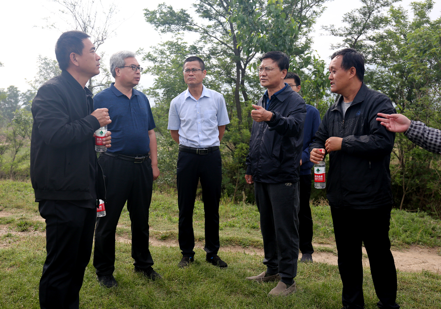 為加快推進(jìn)鴨子池水生態(tài)綜合提升工程施工進(jìn)度,5月20日上午,公司董事長崔作銘帶領(lǐng)公司相關(guān)人員,會同市水務(wù)局、設(shè)計單位、項目公司、項目部就環(huán)湖路工程、泵站排水壓力管線工程,步行從鴨子池泵站沿堤壩逐段實地查看,現(xiàn)場辦公,針對施工中所存在的問題,與設(shè)計單位、項目公司相關(guān)人員現(xiàn)場商議,交換思路,協(xié)商方案。