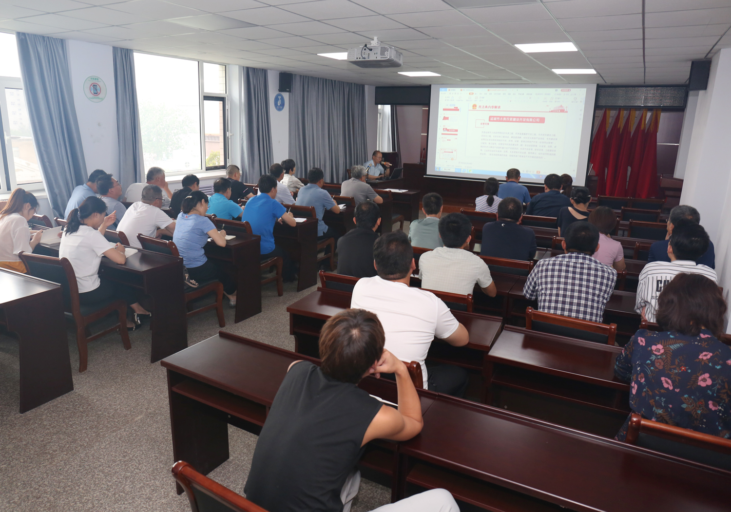 王銀良律師將《民法典》分成兩個(gè)部分解讀,第一部分為綠色原則解讀,第二部分為生活里的民法典。王銀良律師用通俗的語言和生動(dòng)的例子,為大家深刻進(jìn)行了民法典法律解讀,授課內(nèi)容緊貼企業(yè)生產(chǎn)經(jīng)營,從綠色原則解讀了在水系規(guī)劃建設(shè)及生態(tài)環(huán)境保護(hù)的相關(guān)舉措上的法律制度和政策導(dǎo)向;授課內(nèi)容緊貼生活,從《婚姻法》、《繼承法》、到《物權(quán)法》,關(guān)系到每一個(gè)人生活的方方面面,使參會(huì)人員學(xué)習(xí)到了新的法律知識(shí),理解和把握了《民法典》對(duì)日常生活的重要意義。