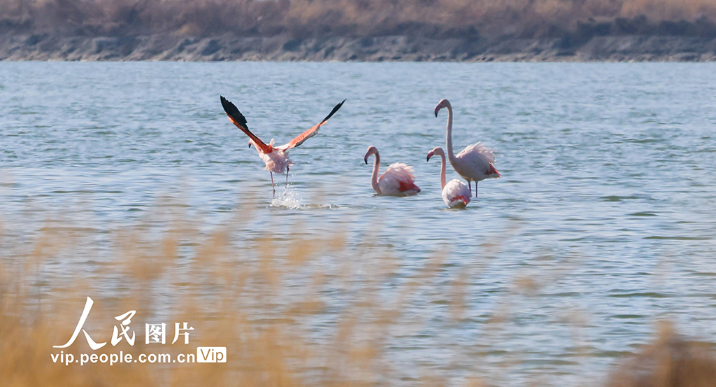 初冬時(shí)節(jié),野生火烈鳥飛抵山西運(yùn)城鹽湖,開(kāi)啟棲息越冬之旅。